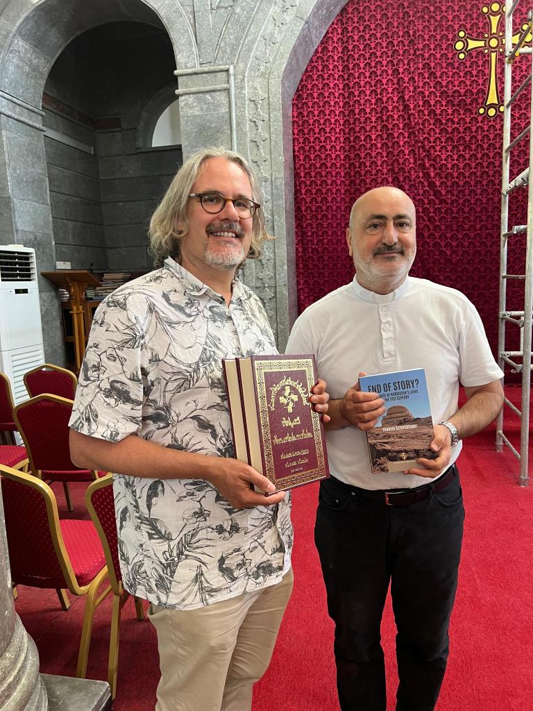Im Mai 2025 verbringe ich als Gastforscher einige Tage an der University of Kurdistan – Hewlêr, einer Universität, die es sich seit ihrer Gründung 2006 zum Ziel gemacht hat, eine neue Generation von politischen Führungspersönlichkeiten für die autonome irakische Region Kurdistan hervorzubringen und somit einen Beitrag zu Entwicklung und Zukunft dieser von Konflikten und Kriegen gebeutelten Region zu leisten. In diesem Rahmen begleite ich meinen Freund und Kollegen Thomas Schmidinger einen Tag lang bei seiner Arbeit. Gemeinsam fahren wir mit seinen Studierenden in die Berge Kurdistans, um die religiösen Minderheiten der Christ:innen und Jesid:innen und das jüdische kulturelle Erbe zu besuchen.